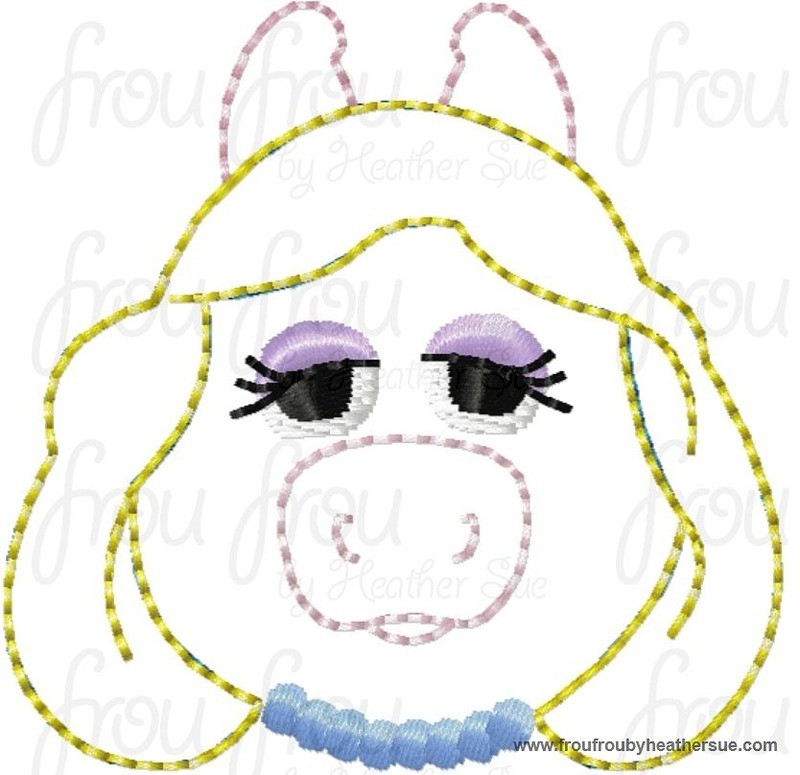 Clippie Miss Sow Pig Head Machine Embroidery In The Hoop Project 1.5, 2, and 3 inch